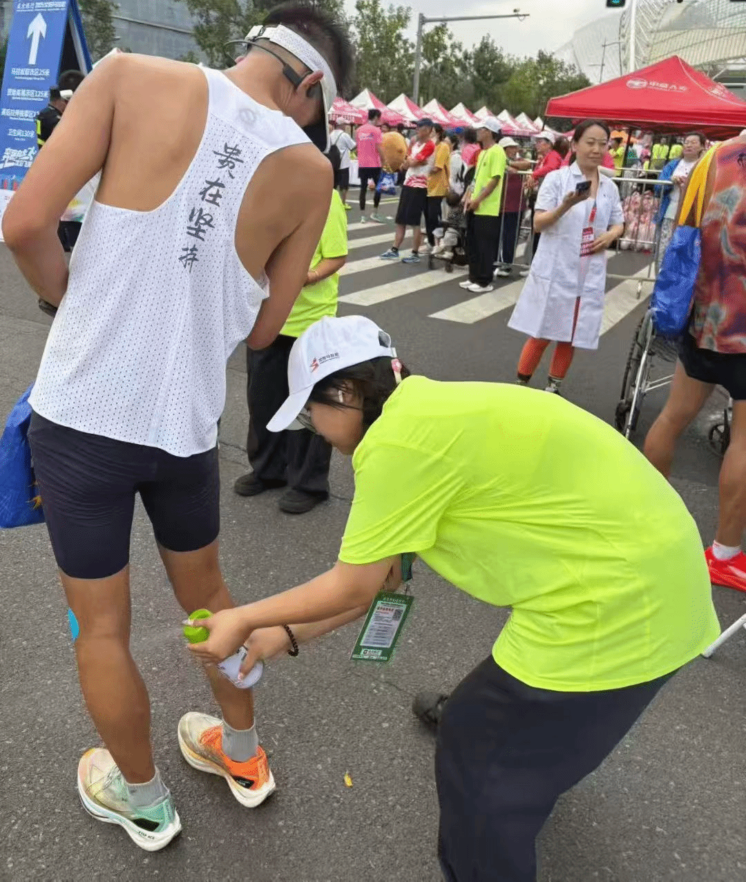9月14日凌晨4时,志愿者们从学校集合出发前往赛场。在顺利到达各自服务点位后,志愿者们便迅速投入到了工作中,他们有条不紊地进行志愿服务准备工作,只为给参赛选手们提供最贴心的服务、最全面的保障。7点30分,马拉松第一枪打响,志愿者们也积极投入到各自的工作中了,他们各尽所长、默契配合,时刻观察赛道上选手动态,第一时间为体力不支、体温过高、或受伤的运动员送上帮助,用爱与真情为参赛选手保驾护航。