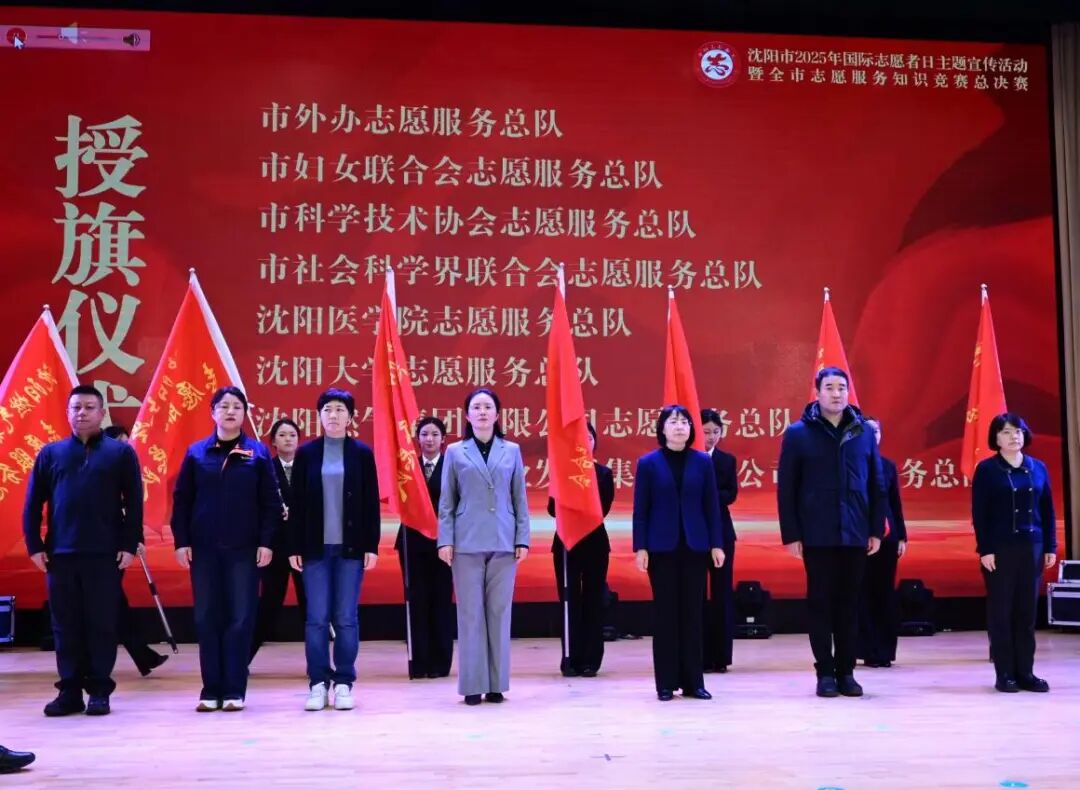 12月2日,沈阳市国际志愿者日主题宣传活动现场,一场彰显责任与担当的授旗仪式隆重举行。中共沈阳市委社会工作部向沈阳医学院专业志愿服务队正式授旗,校团委书记杨迪作为高校代表接旗。这面承载着使命与期许的旗帜,不仅是对学校志愿服务工作的高度认可,更是新时代高校践行社会责任、助力文明城市建设的重要象征,标志着沈阳医学院专业志愿服务迈入规范化、品牌化发展的全新阶段。
