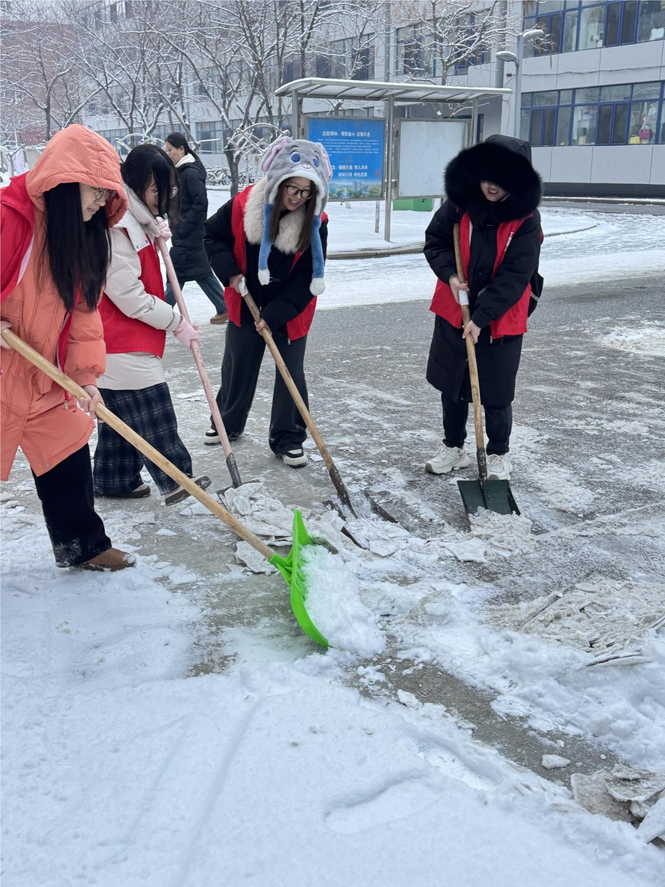 瑞雪启新程,志愿正当时。伴随着初春的一场大雪,沈阳医学院2026年“英雄永不谢幕 雷锋精神代代相传”雷锋精神实践月正式拉开帷幕。志愿者们从身边小事做起,用劳动美化校园,用行动温暖同窗。志愿者们手持铁锹、扫帚,对校园主干道、教学楼前等重点区域积雪进行集中清理;与此同时,教室清扫行动也在有序展开,志愿者们认真擦拭桌椅、清理地面、整理讲台和电教台,共完成百余间教室的清洁工作。在志愿精神的感召下,越来越多的同学主动加入服务队伍,以实际行动向榜样金城龙同志学习,将崇高精神内化于心、外化于行,让雷锋精神在新学期落地生根。