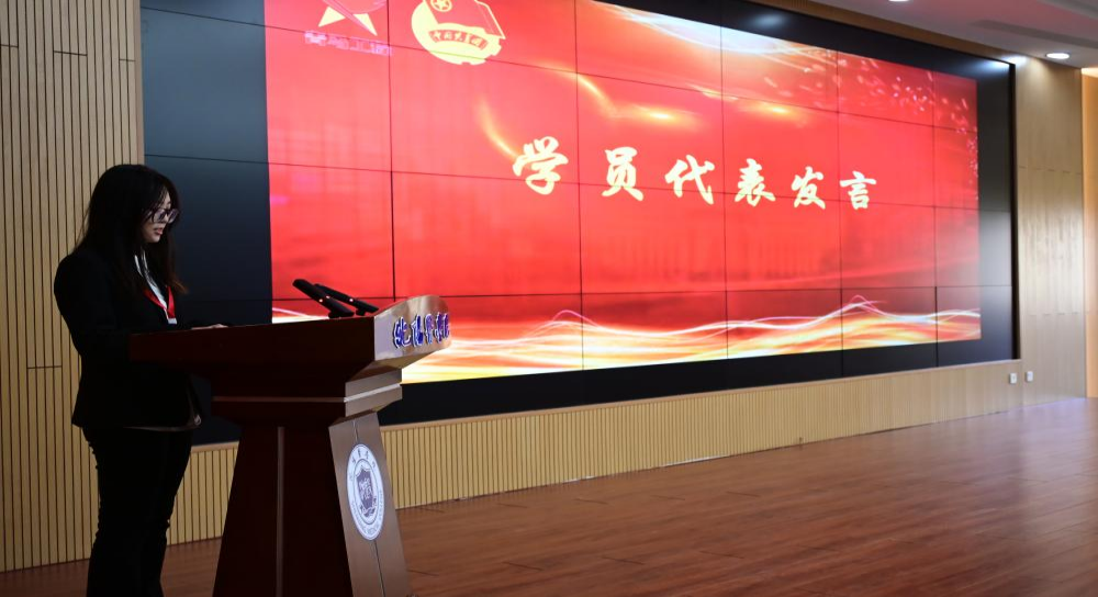 第八期学员代表徐靖斯发言,号召青马学员们珍惜韶华、勇毅前行。