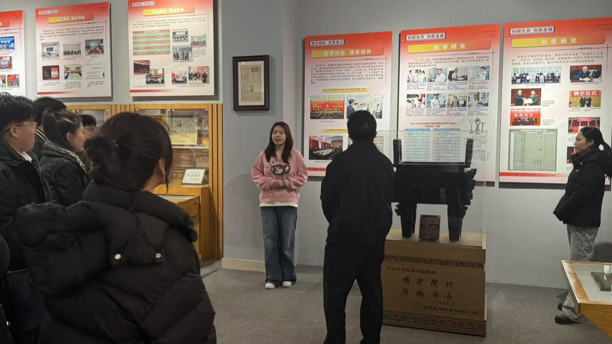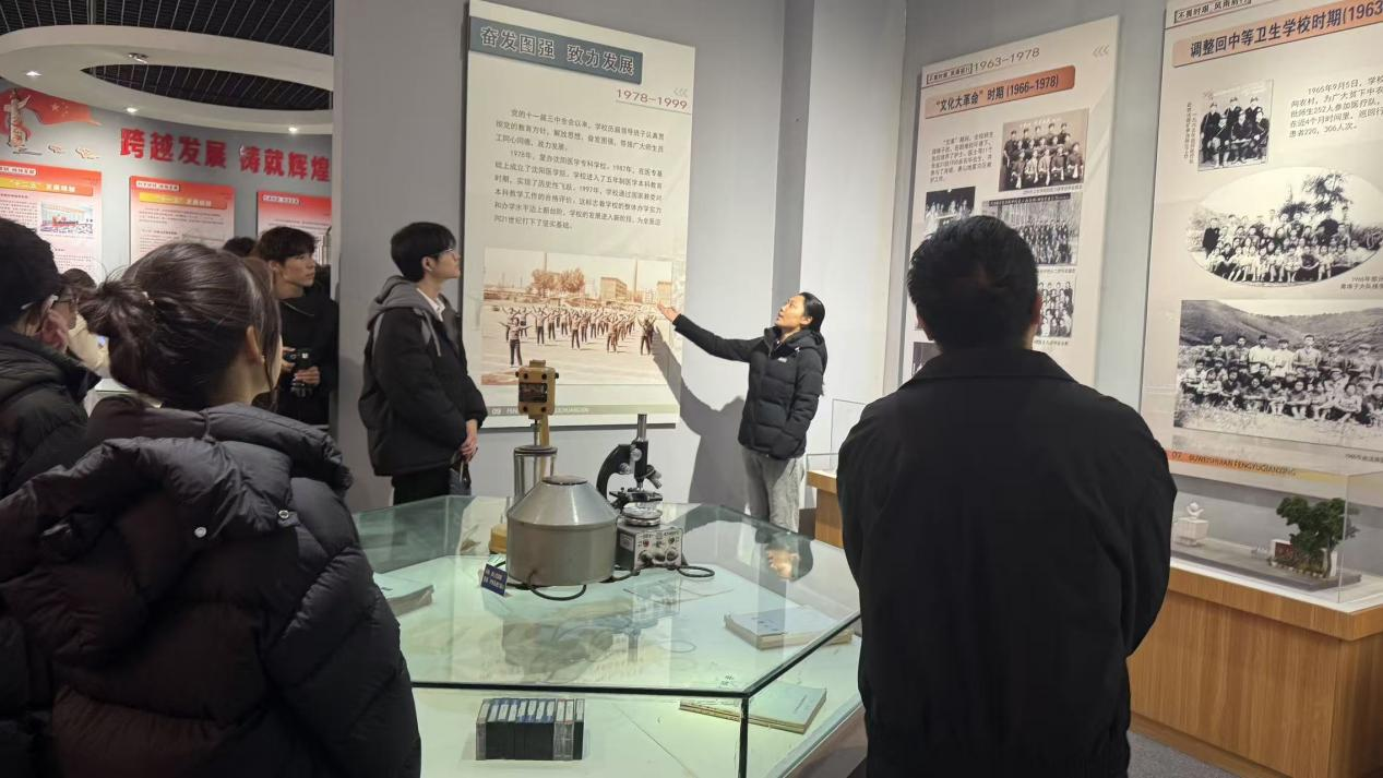 活动伊始,校史馆讲解员结合详实的文字史料、珍贵的实物展品与生动的影像资料,向青马班学员们系统讲述了学校的发展脉络。馆内陈列的老教案、旧仪器、荣誉证书等实物,直观展现了一代代沈医人扎根医学教育、践行医者使命的执着追求,让学员们真切感受到学校厚重的办学底蕴与鲜明的育人特色。