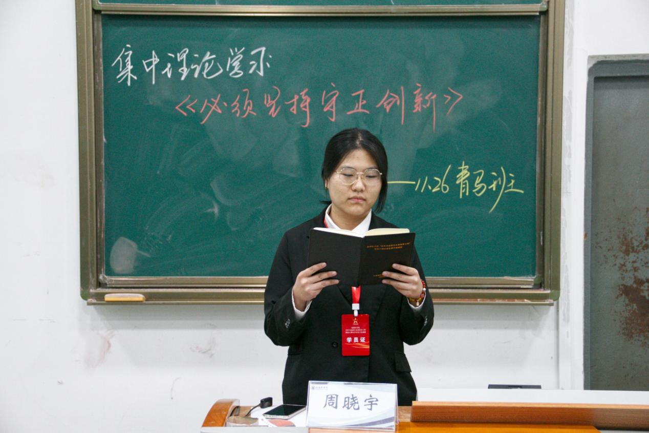 11月26日,沈阳医学院校学生会主席周晓宇带领青马学员开展集中理论学习,学习习近平总书记重要文章《必须坚持守正创新》。守正是创新的前提,确保创新不偏方向、不犯颠覆性错误。创新是守正的延伸,让守正更具活力、更能持久。二者体现继承与发展、原则性与创造性的统一,在改革实践中实现聚变跃升。