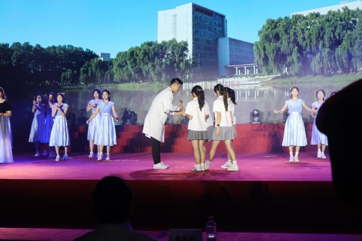 2025-10-21日前,在我校隆重举行的迎新晚会上,第一临床医学院师生代表共同演绎的歌曲《送你一朵小红花》温情脉脉,以精心的编排和台上师生的全心全意表演,赢得了现场师生的热烈掌声。