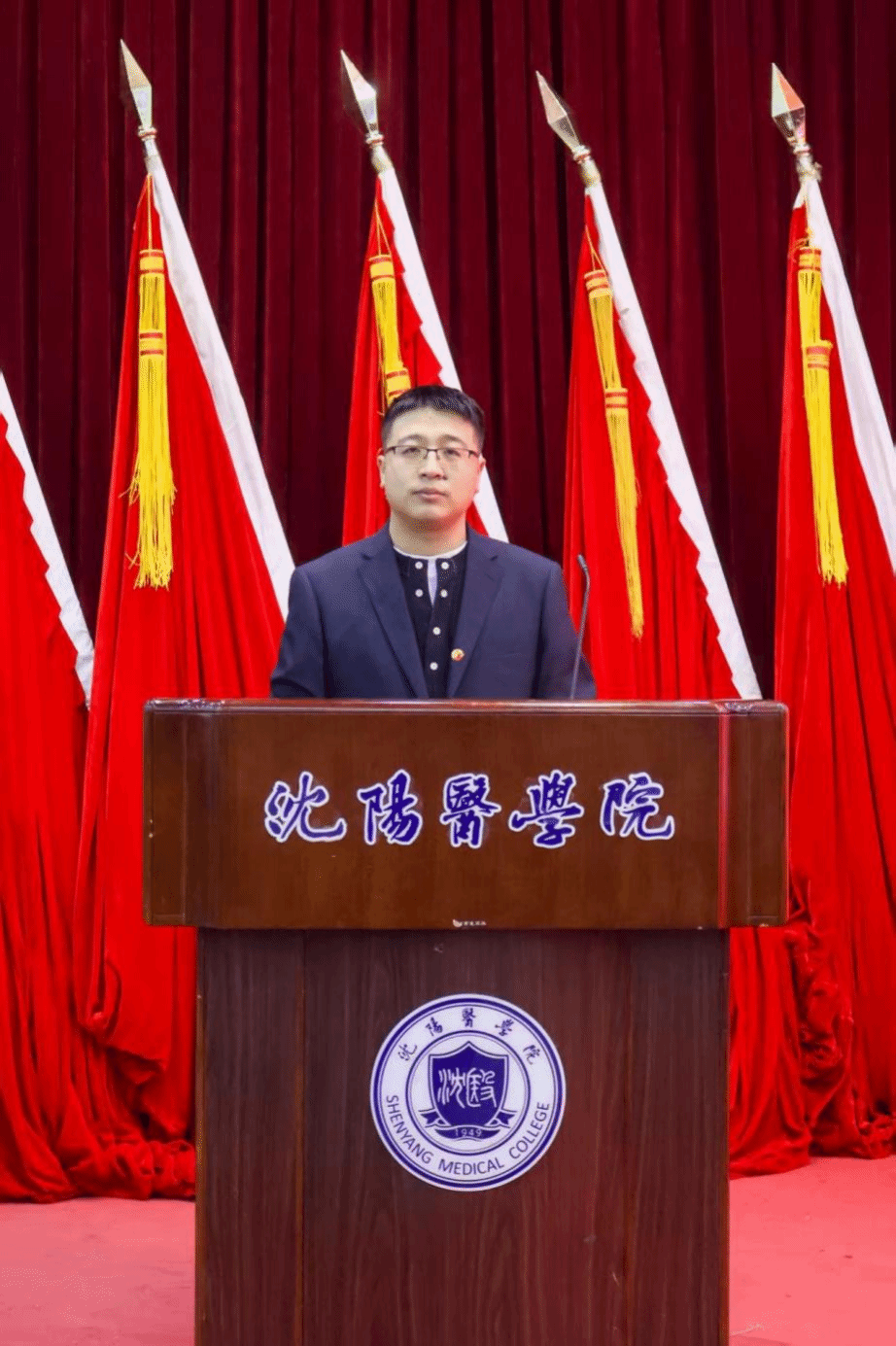 杨迪书记祝贺大会召开,向与会领导、代表及全校青年同学致以问候与祝愿,肯定第五次学代会以来各级学生组织在校党委领导、上级团组织指导下,围绕学校中心工作团结同学锐意进取,在服务同学成长、助力学校发展中成效显著,彰显沈医青年昂扬风貌。杨迪对学生代表及学生会干部提三点希望:一是强化思想引领,筑牢信仰之基,引导同学坚定跟党走,将个人理想融入国家事业,以青年方式开展活动,激发爱国报国热情,成长为与时代同频的新时代青年;二是强化力量凝聚,增强组织凝聚力,以优质活动与服务团结同学,引领在学业、双创、校园文化建设中担当作为,贡献青春智慧;三是强化成长服务,秉持“以同学为中心”,倾听需求、办好实事,成为同学信赖的“身边人”,勉励沈医青年不忘初心、勇担使命,在学校发展与民族复兴中书写青春答卷。