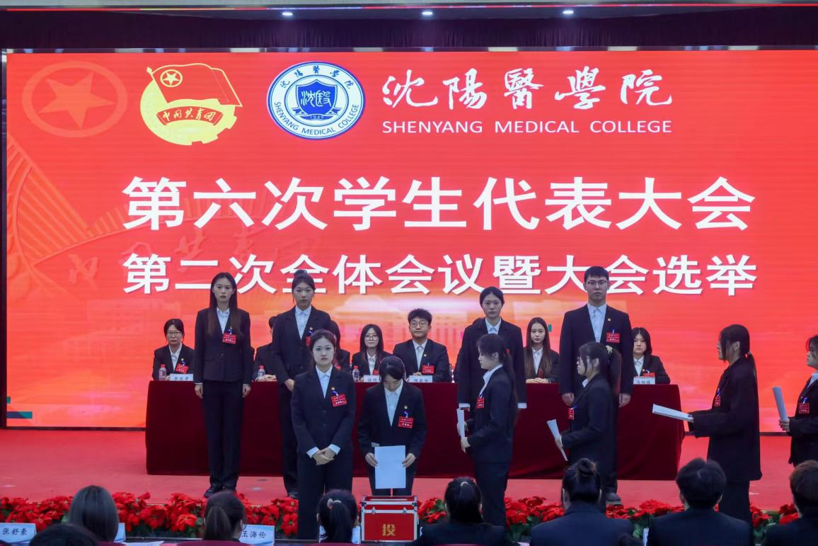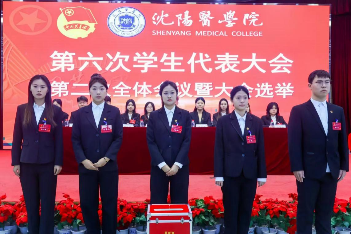 沈阳医学院第五次学生代表大会主席团成员郑宇彤做《学生会组织工作报告》,沈阳医学院第六次学生代表大会经学校党委批准、上级学联指导召开,大会以习近平新时代中国特色社会主义思想为指导,贯彻党的二十大精神,回顾过往工作并谋划未来方向,凝聚青年力量助力高水平医科大学建设。过去,校学生会紧扣“四自”职能,在思想引领上开展理论学习、推进青马工程;文化建设上打造特色活动与赛事;权益服务上搭建诉求反馈机制,组织实践活动,成效颇丰。未来,学生会将强化理论武装与爱国教育,通过“六大节”、“五大联赛”等满足同学需求,优化组织建设、推进科创育人,融合全媒体强化网络育人,团结全校青年勇担使命、贡献青春力量。